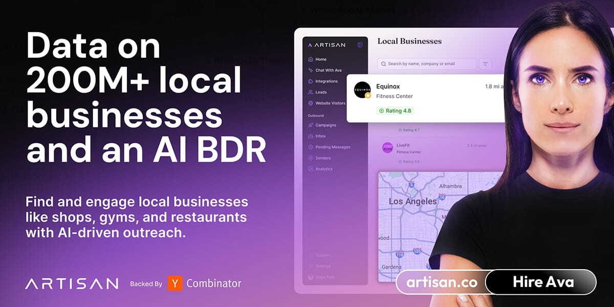 Bạn đang vất vả tìm người ra quyết định tại các doanh nghiệp nhỏ? Ava – trợ lý bán hàng AI của Artisan – có thể truy cập hơn 200 triệu hồ sơ doanh nghiệp từ Google và tự động liên hệ, giúp bạn tập trung vào chốt hợp đồng thay vì chạy tìm khách.