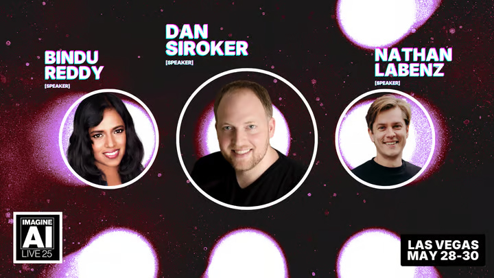 IMAGINE AI LIVE '25 cung cấp cho doanh nghiệp của bạn quyền truy cập trực tiếp vào những người tiên phong về AI mà hầu hết các công ty không thể tiếp cận, với những diễn giả như Bindu Reddy, Dan Siroker và Nathan Labenz, nén nhiều năm học tập chỉ trong ba ngày.