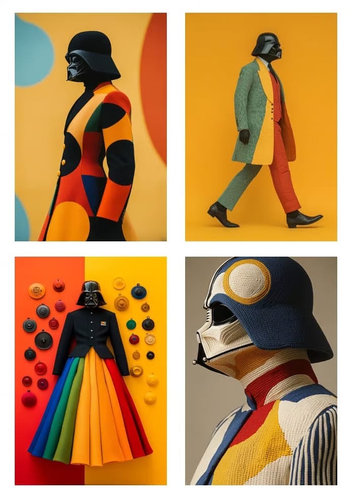 (Lời nhắc giữa hành trình: Darth Vader trong phong cách thời trang thập niên 60 đầy màu sắc --chaos 23 --ar 2:3 --stylize 777 --weird 1 --personalize n49dt41)