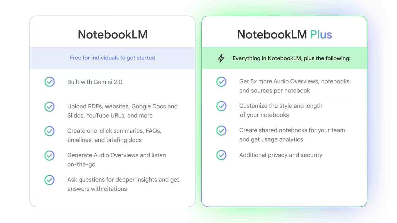 Các tính năng Plus mới của NotebookLM. Nguồn: Alphabet