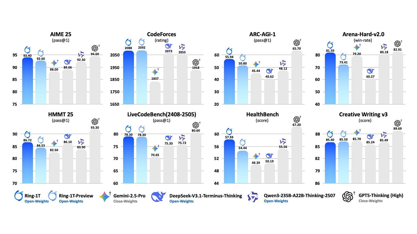 Tại sao điều này quan trọng: Với hiệu suất gần SOTA và khả năng lý luận gần GPT-5, Ring-1T càng làm mờ ranh giới giữa AI mở và đóng. Nó cũng đánh dấu một bước tiến lớn trong nỗ lực của Trung Quốc thách thức phương Tây trong cuộc đua AI, chỉ còn là vấn đề thời gian trước khi quốc gia này sản xuất một mô hình có khả năng chiếm vị trí dẫn đầu toàn cầu.