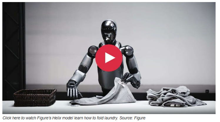 House Helper: Figure vừa công bố video về robot hình người sử dụng mô hình Helix của công ty để nhặt từng món quần áo, là phẳng và xếp gọn vào giỏ tất cả đều theo lệnh thoại đơn giản. Helix cho phép robot xử lý các vật dụng gia đình không quen thuộc mà không cần lập trình phức tạp. Chạy trên GPU công suất thấp, hệ thống còn có thể phối hợp nhiều robot cùng làm việc trên cùng một nhiệm vụ.