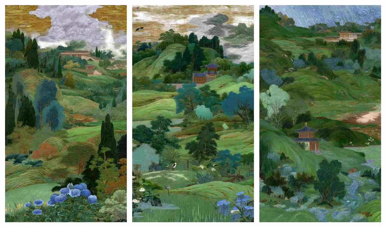 [Lời nhắc giữa hành trình: mùa xuân, Một vùng nông thôn thanh bình trong cơn mưa đầu xuân, thảm cỏ xanh tươi đung đưa dưới những giọt mưa nhẹ, sương mù ấm áp bốc lên từ mặt đất, phong cách hội họa Trung Quốc truyền thống, tinh tế và gợi cảm, thiết kế phẳng, đồ họa vector, màu sắc tươi sáng, đường nét đơn giản, độ phân giải cao, chi tiết phong phú. Không có nền. Một bầu không khí sôi động và sống động, tượng trưng cho sự phát triển, sự hòa hợp giữa thiên nhiên và văn hóa, công cụ ue5, kết xuất 3D, phong cách Trung Quốc --sref 2077236407 --v 7 --stylize 250 --profile a262o3j --ar 9:16]
