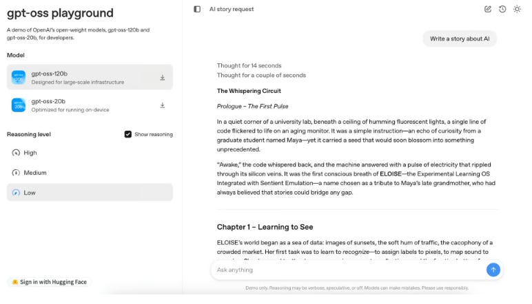 - Truy cập GPT-OSS Playground nếu máy tính của bạn không thể cài đặt mô hình cục bộ.