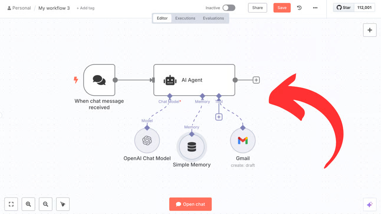 Thêm một Đại lý AI với mô hình bạn ưa thích (GPT-4, Claude) và Bộ nhớ Đơn giản.