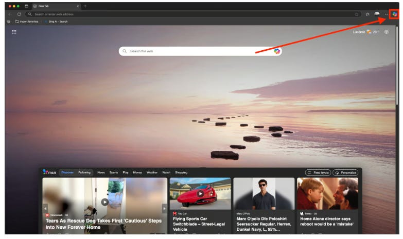 - Mở Microsoft Edge và nhấp vào thanh Copilot (góc trên bên phải) đăng nhập bằng tài khoản Microsoft để truy cập miễn phí.