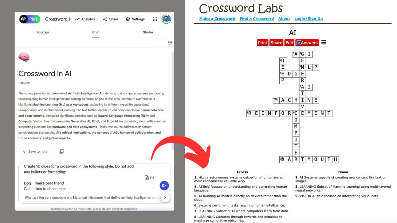 Trong hướng dẫn này, bạn sẽ học cách biến bất kỳ tài liệu bài học nào thành các câu đố ô chữ hấp dẫn bằng cách kết hợp phân tích AI của NotebookLM với trình tạo câu đố của CrosswordLabs.