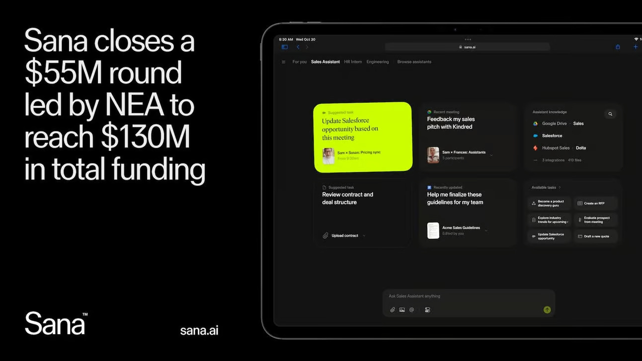 Tin nóng hổi: Sana vừa công bố vòng tài trợ trị giá 55 triệu USD, do NEA dẫn dắt, giúp công ty này đạt tổng quỹ lên đến 130 triệu USD. Với lượng tài trợ khổng lồ này, Sana đang vươn lên trở thành một trong những tên tuổi dẫn đầu trong ngành công nghệ AI trên toàn cầu. Liệu họ sẽ thay đổi cục diện thị trường?
