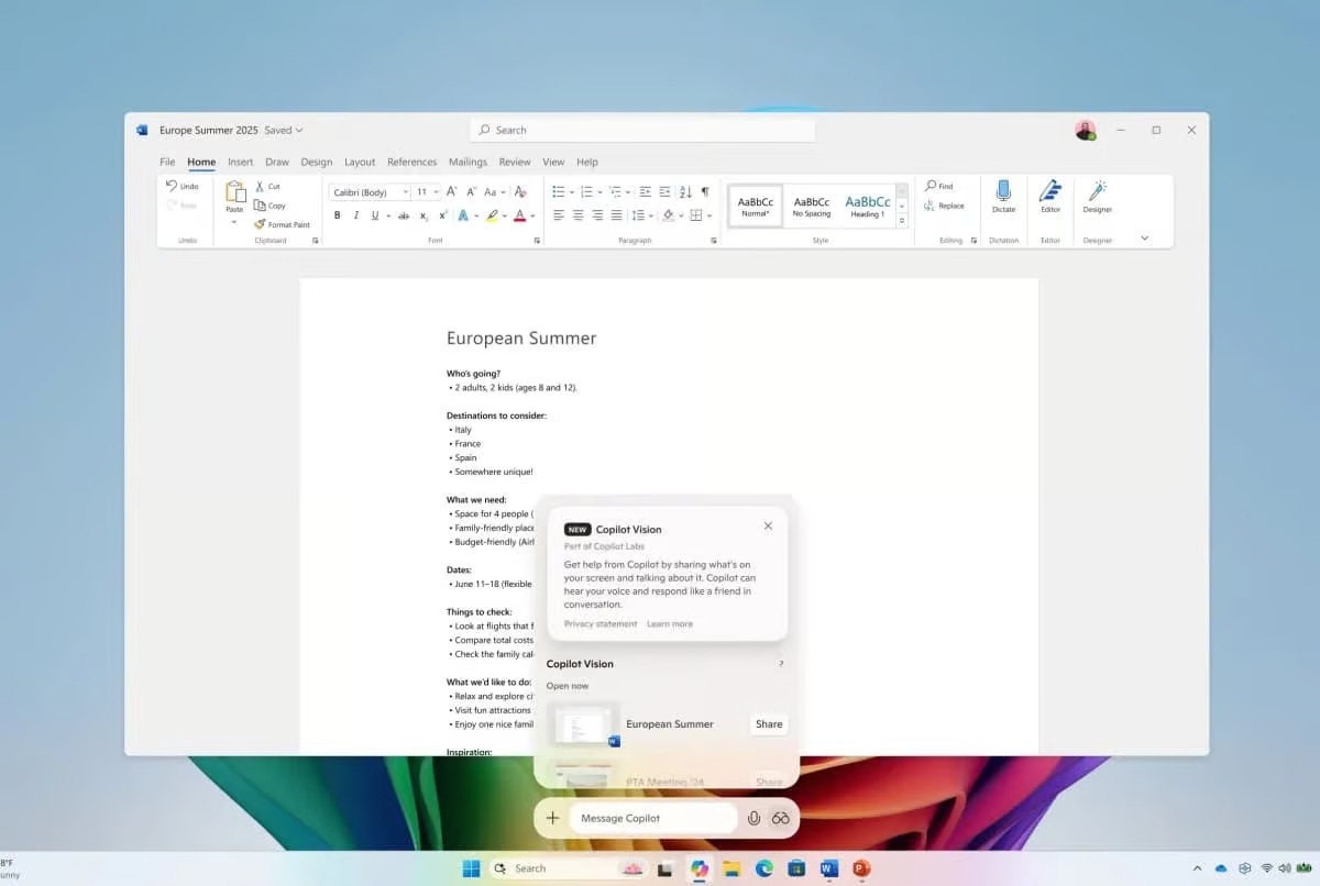 Copilot Vision chạy trên Windows 11: Nguồn hình ảnh: Microsoft
