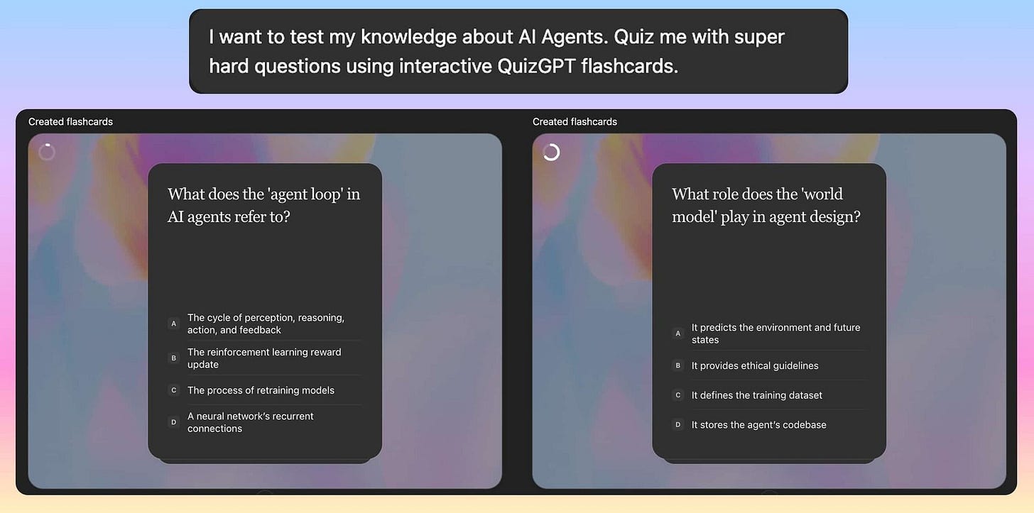 👉 Ví dụ prompt: Tôi muốn kiểm tra kiến thức của mình về [nhập chủ đề]. Hãy đố tôi bằng những câu hỏi siêu khó dưới dạng flashcard tương tác của QuizGPT.
