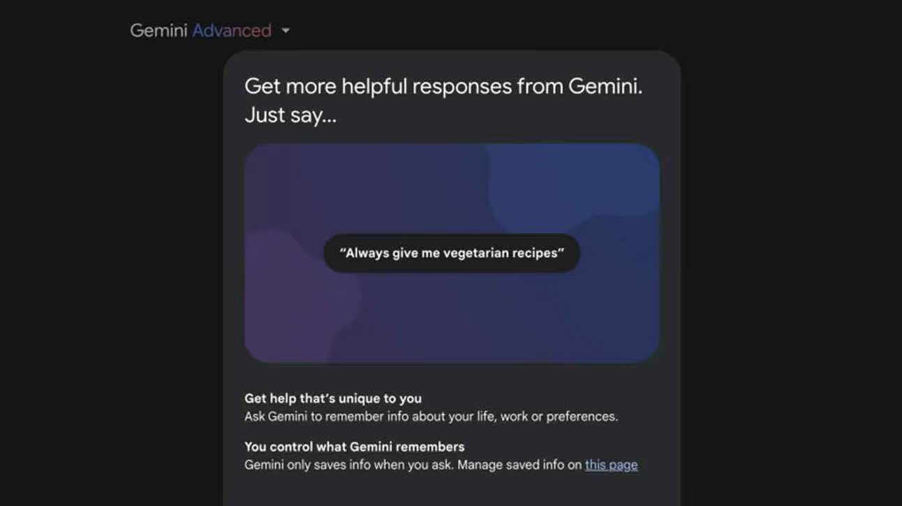 Hệ thống trí nhớ của Gemini có thể lưu trữ sở thích cá nhân và ngữ cảnh qua các cuộc hội thoại, từ sở thích lập trình đến hạn chế ăn uống.
