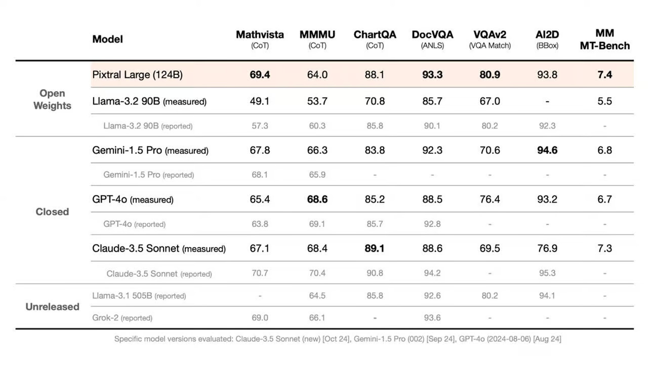 Pixtral Large vượt trội hơn các mô hình hàng đầu về khả năng suy luận toán học và các nhiệm vụ thực tế, đồng thời đánh bại Gemini 1.5 Pro và GPT-4o trong việc xử lý đồ thị và tài liệu.