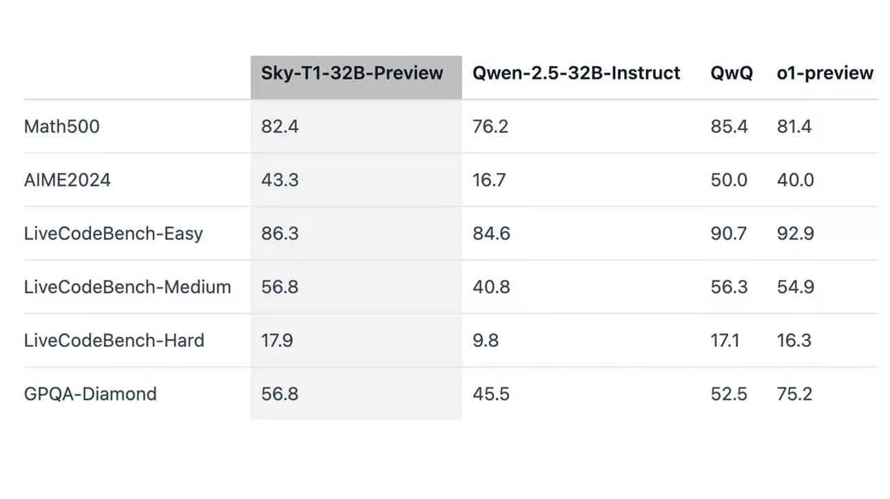Sky-T1 không chỉ là phiên bản nâng cấp của Qwen2.5-32-Instruct từ Alibaba mà còn là một cú đột phá với dữ liệu đào tạo được tạo ra từ mô hình suy luận mã nguồn mở QwQ-32B-Preview.