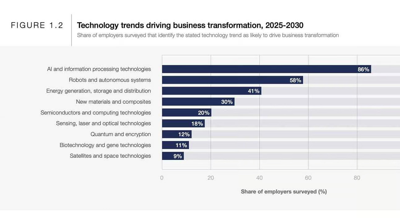 Sự gia tăng áp dụng công nghệ đang diễn ra mạnh mẽ, khi 86% các công ty cho rằng AI sẽ làm thay đổi hoàn toàn cách họ vận hành vào năm 2030.