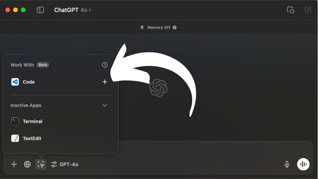 Mở ChatGPT trên macOS và bật "Work with Apps" trong Cài đặt.