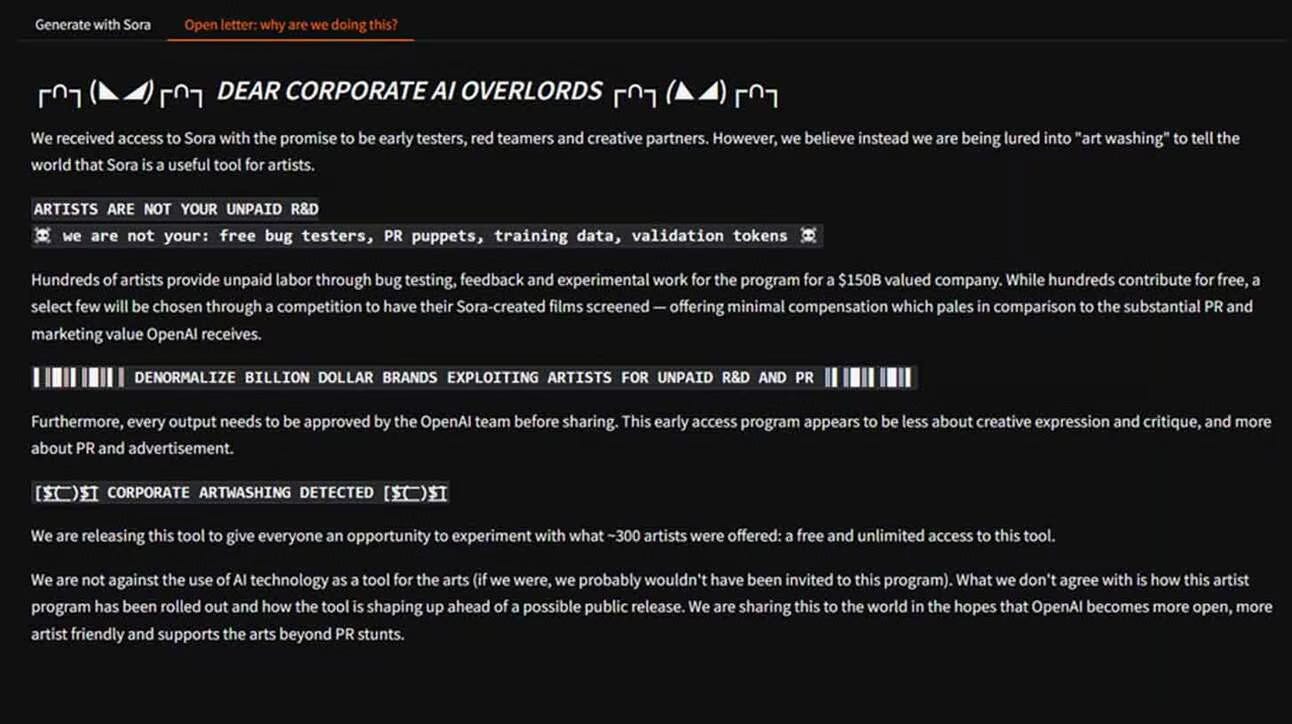 Nhóm phản đối khẳng định rằng OpenAI đã tuyển dụng hàng trăm nghệ sĩ tham gia thử nghiệm miễn phí, nhưng lại duy trì quyền kiểm soát chặt chẽ đối với mọi nội dung được tạo ra và chia sẻ.
