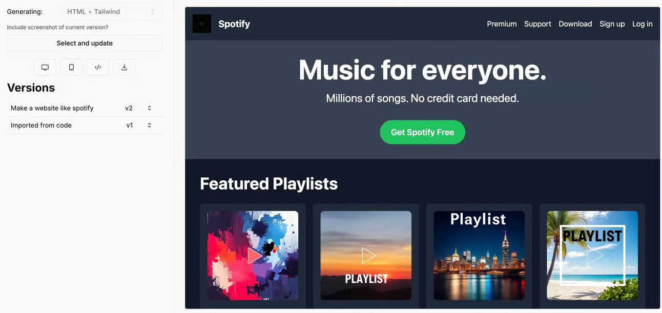 Sample Prompt: 'Làm một trang web như Spotify'