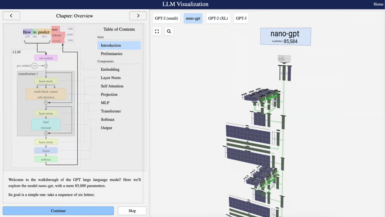 LLM Visualization là một nền tảng học tương tác kết hợp giải thích văn bản từng bước với các trực quan hóa 3D động để giúp bất kỳ ai hiểu rõ hơn về các mô hình ngôn ngữ lớn (LLMs).