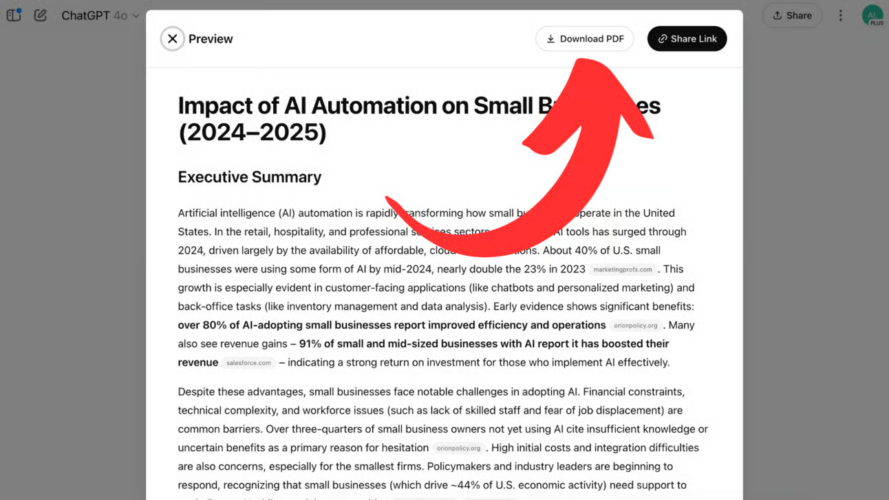 Mẹo chuyên nghiệp: Tải xuống PDF cũng hoạt động với cả báo cáo nghiên cứu mới và cũ trong lịch sử trò chuyện của bạn.