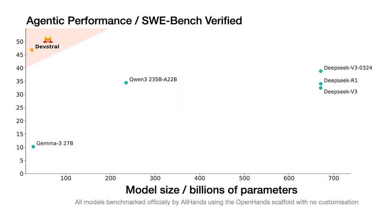 Startup AI của Pháp Mistral vừa hợp tác với All Hands AI để ra mắt Devstral, một mô hình mã nguồn mở mới có hiệu suất vượt trội hơn so với các đối thủ lớn hơn nhiều trong các nhiệm vụ kỹ thuật phần mềm trong khi vẫn đủ nhỏ để chạy trên máy tính xách tay hoặc GPU đơn.