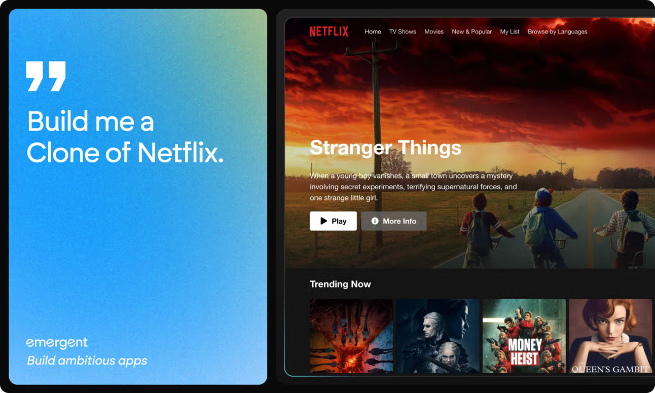 Emergent hoàn toàn thay đổi quy trình làm việc cho nhà tạo ứng dụng bằng cách biến mô tả thành các ứng dụng sẵn sàng sản xuất mà không cần mã hóa — cho phép bạn tung ra các sản phẩm nhanh hơn, thông minh hơn và đơn giản hơn cho mọi thứ từ MVP nhanh đến các nền tảng đầy đủ.