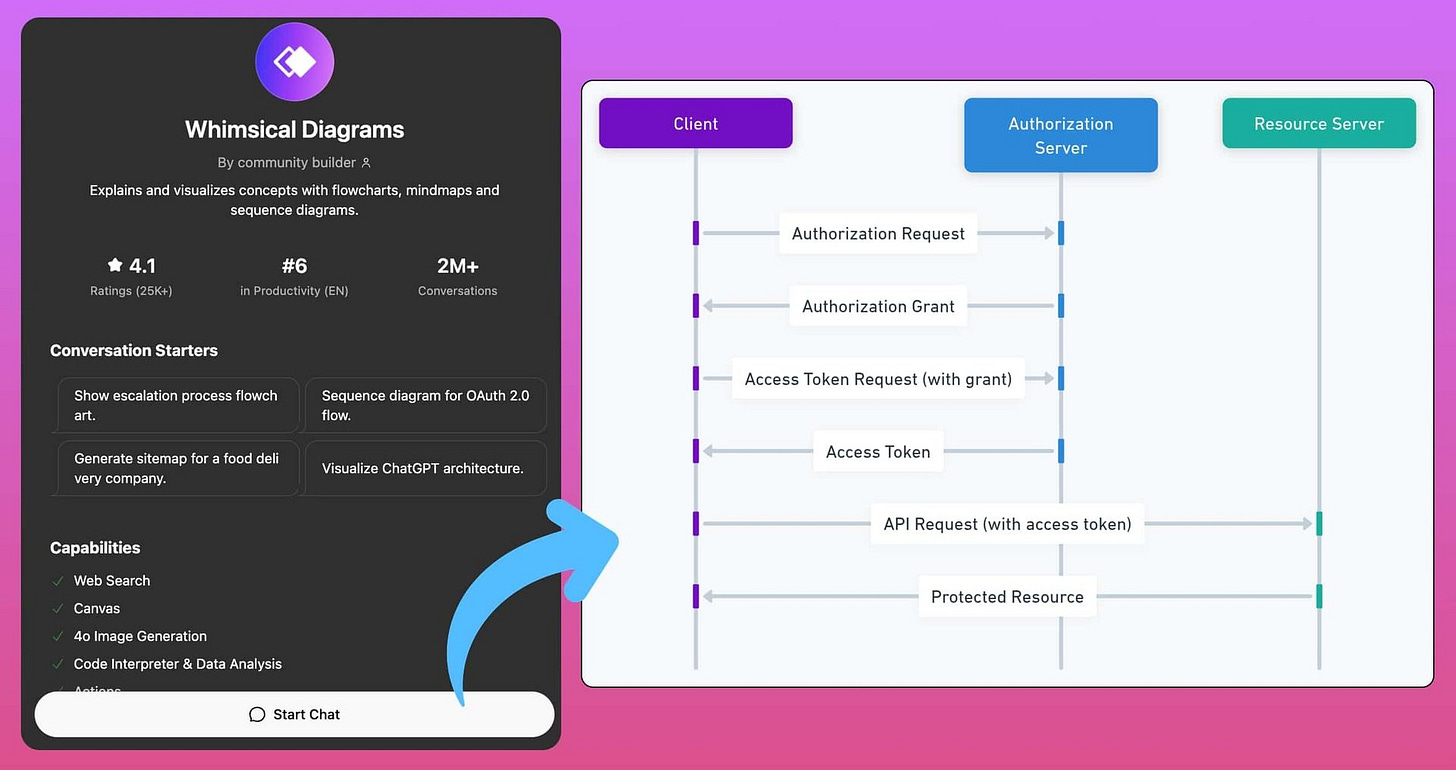 Đây là cách bạn có thể tạo sơ đồ, biểu đồ chuyên nghiệp chỉ từ văn bản bằng cách sử dụng Whimsical Diagrams trong GPT Store: