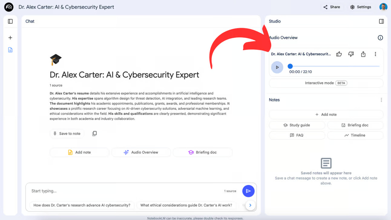 Với NotebookLM, bạn không chỉ nhận được phản hồi chi tiết mà còn có cơ hội cá nhân hóa sơ yếu lý lịch của mình qua các cuộc trò chuyện tương tác. Hệ thống này giúp bạn nổi bật và khẳng định thành tích chuyên môn một cách đột phá, mở ra cơ hội nghề nghiệp mới.