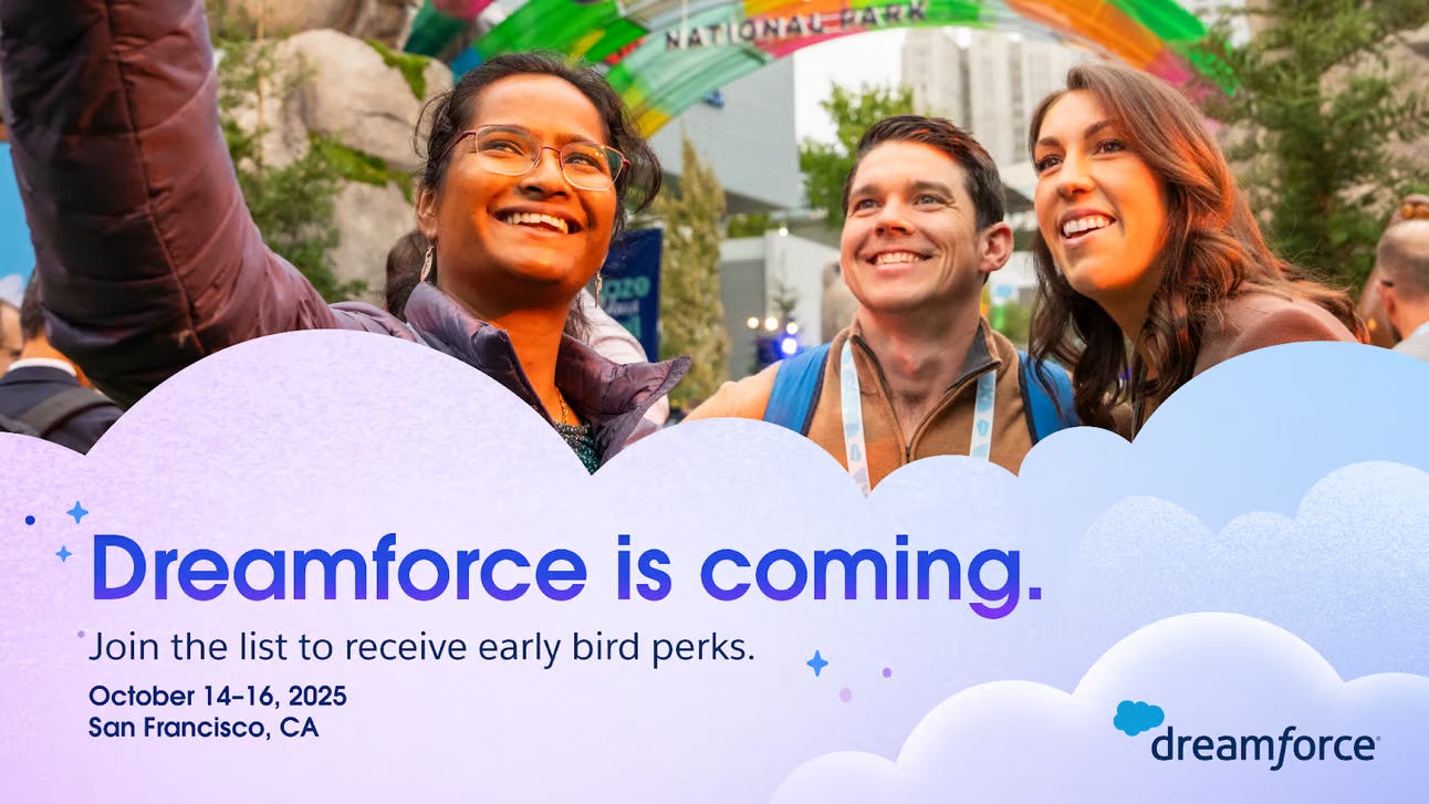 Dreamforce 2025 — sự kiện AI lớn nhất, đáng tin cậy nhất thế giới — trở lại vào ngày 14 tháng 10 với ba ngày đổi mới ở cấp độ mới và cảm hứng thực tế mà bạn có thể mang về doanh nghiệp của mình.