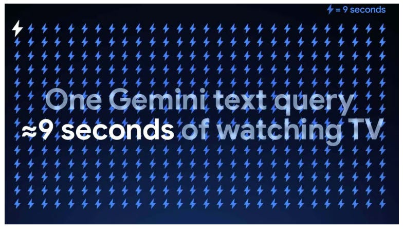 - Kết quả công bố cho thấy mỗi yêu cầu văn bản với Gemini tiêu thụ năng lượng tương đương xem TV trong 9 giây và tạo ra lượng khí thải carbon tối thiểu.
