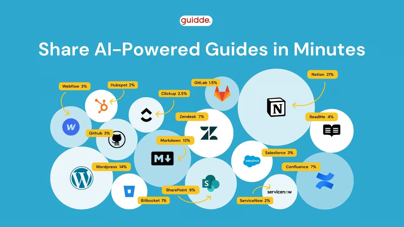 Guidde mang đến một cách thức mới mẻ và đột phá để chia sẻ các ý tưởng phức tạp: Tạo video hướng dẫn chi tiết chỉ với vài cú nhấp chuột. Tải lên tệp PDF hoặc ghi lại màn hình, thêm thuyết minh hoặc phụ đề, và bạn đã sẵn sàng chia sẻ kiến thức của mình ngay lập tức!