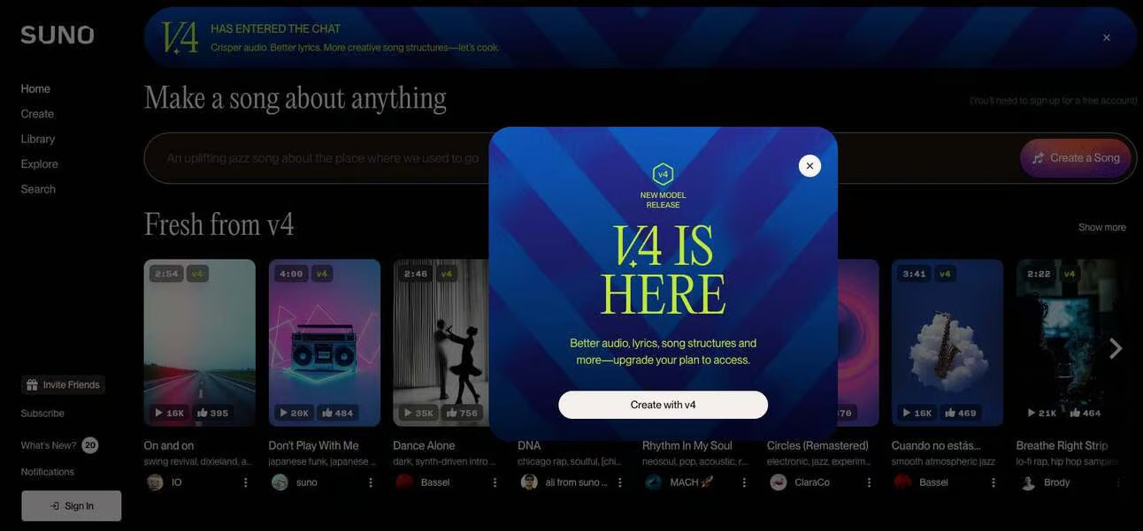 Suno v4 mang đến những giọng hát và lời bài hát chân thực hơn, cùng hàng loạt tính năng mới thú vị