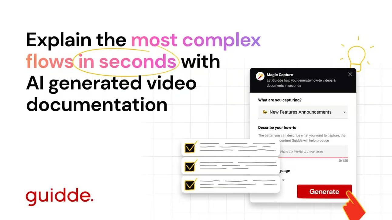 Dù bạn đang hướng dẫn nhân viên làm việc từ xa hay trình bày các tính năng sản phẩm phức tạp cho khách hàng, Guidde có thể tiết kiệm cho bạn nhiều giờ với các video hướng dẫn tạo từ AI ngay lập tức.